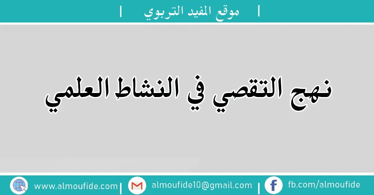 تتعدد مناهج تدريس ماذة النشاط العلمي في التعليم الابتدائي ،الا أن أبرز هذه المناهح هو التدريس باعتماد منهج التقصي ونظرا لراهنيته وحاجة الكثير من الاساتذة والمهتمين وخاصة المقبلين على اجتياز المباريات والامتحانات المهنية ارتأينا أن نقدم لكم هذا العرض الشامل حول نهج التقصي في النشاط العلمي مع مراحل التخطيط والتنفيذ.