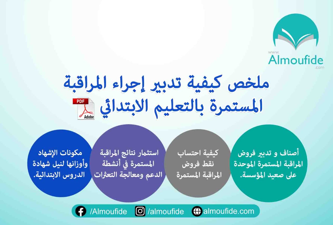 تجدون أسفله ملخص طريقة تدبير إجراء المراقبة المستمرة بالتعليم الابتدائي بصيغة pdf.