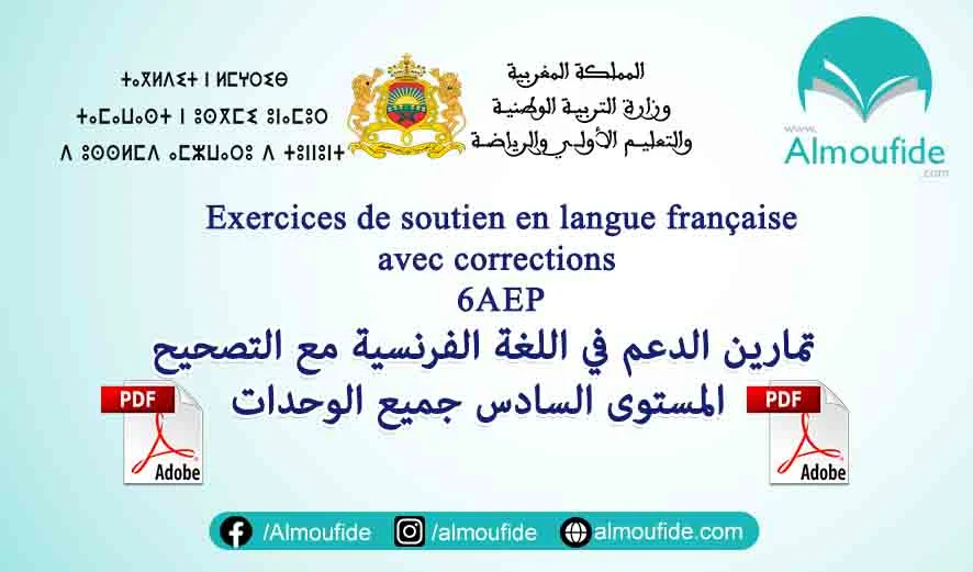 تمارين داعمة في اللغة الفرنسية مع التصحيح المستوى السادس |