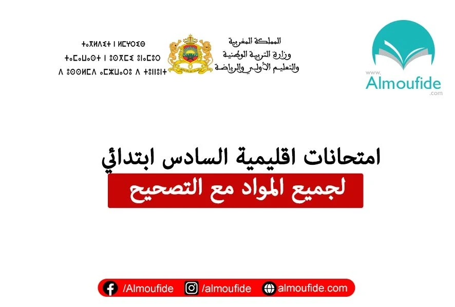 | إمتحانات إقليمية للمستوى السادس ابتدائي مع التصحيح 2023-2024 دورة يونيو |