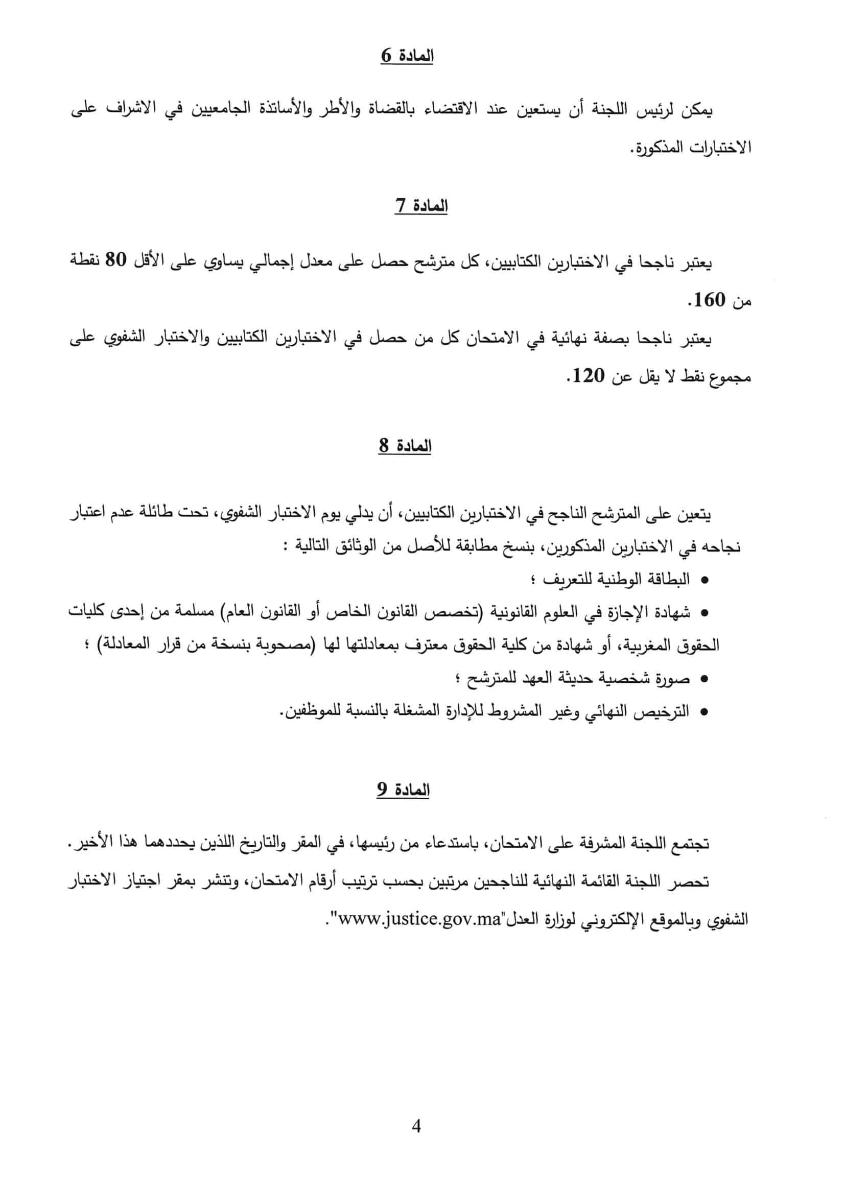 تحصر اللجنة القائمة النهائية للناجحين مرتبين بحسب ترتيب أرقام الامتحان، وتنشر بمقر اجتياز الاختبار الشفوي وبالموقع الإلكتروني لوزارة العدل www.justice.gov.ma