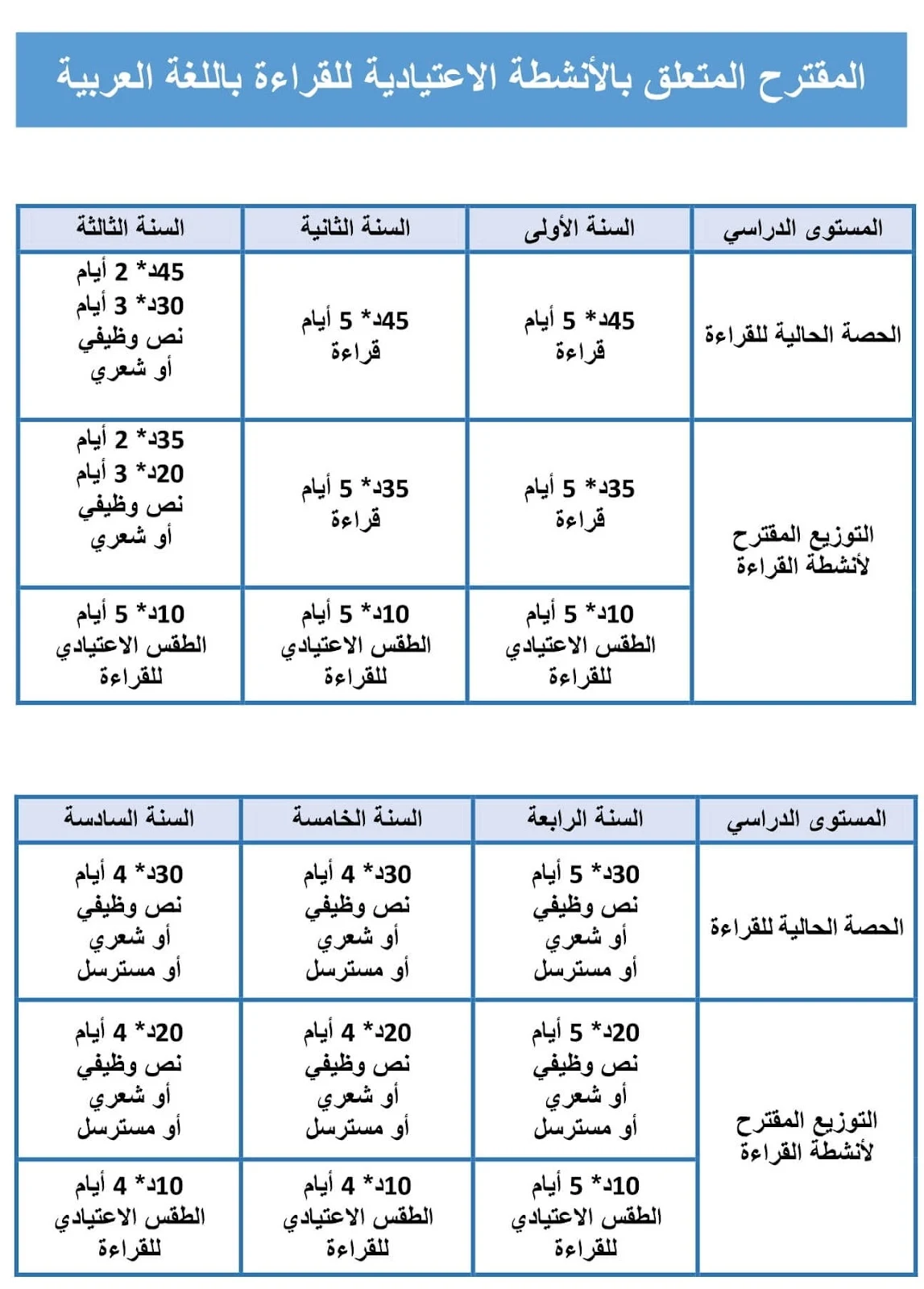 مدة الانشطة الاعتيادية لمكون القراءة : 10دقائق