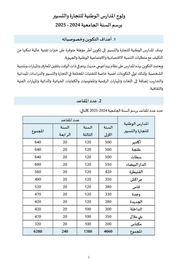 - عدد مقاعد بالمدارس الوطنية للتجارة والتسيير ENCG: