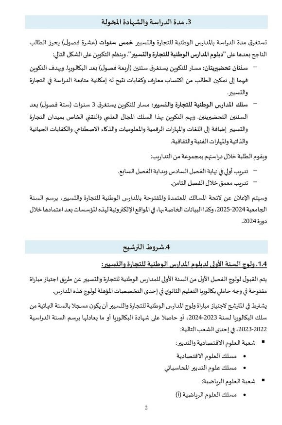 - شروط التسجيل في الوطنية للتجارة والتسيير ENCG 2024