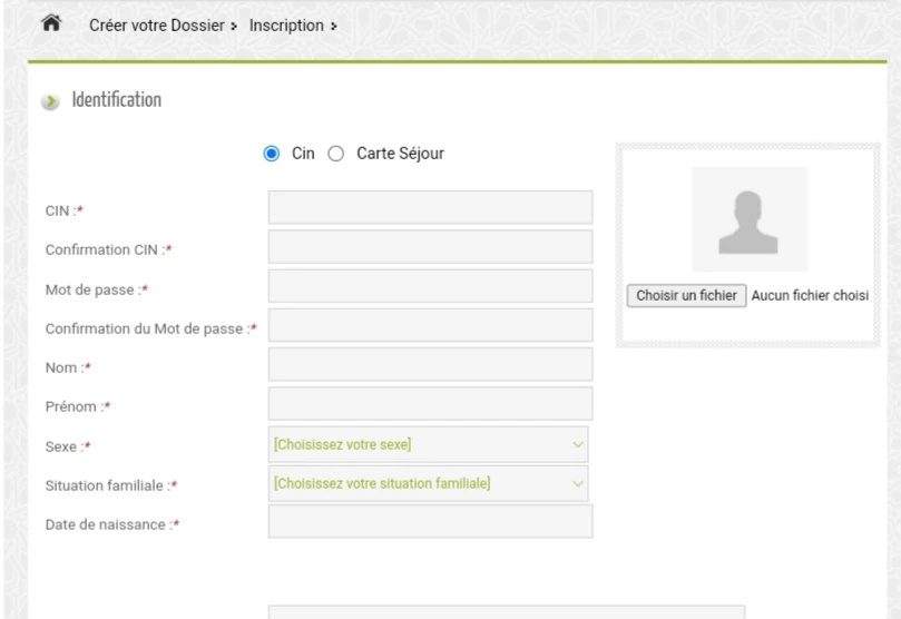 3. قُم بملء جميع المعلومات الهامة الخاصة بك، مثل الاسم الكامل، النسب، رقم البطاقة الوطنية، المدينة، العنوان البريدي وكلمة المرور "Identification".