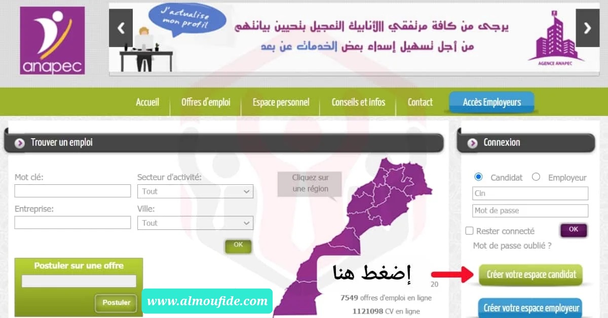 طريقة الترشح لعروض الشغل عبر موقع الأنابيك Inscription Anapec