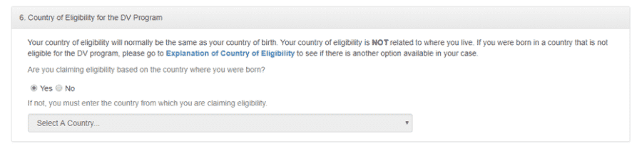 8. يجب أن يكون المتقدم من إحدى الدول المؤهلة للمشاركة في قرعة هجرة أمريكا "DV Lottery".