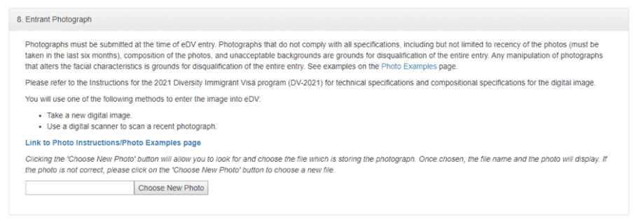 5. يجب تقديم صورة شخصية بحجم 600*600 بيكسل تفي بجميع متطلبات الصورة المطلوبة للتقديم في قرعة الهجرة إلى أمريكا.